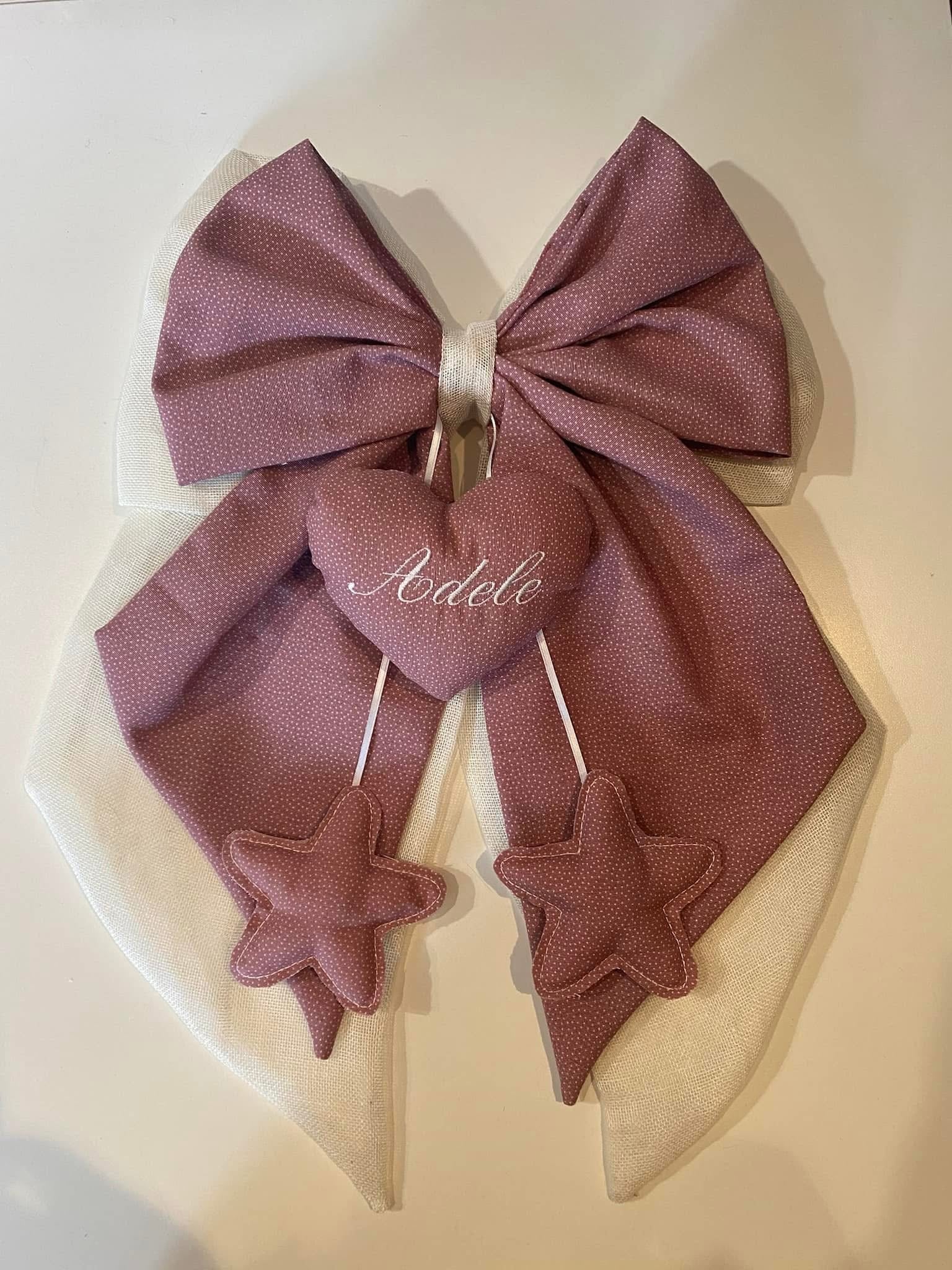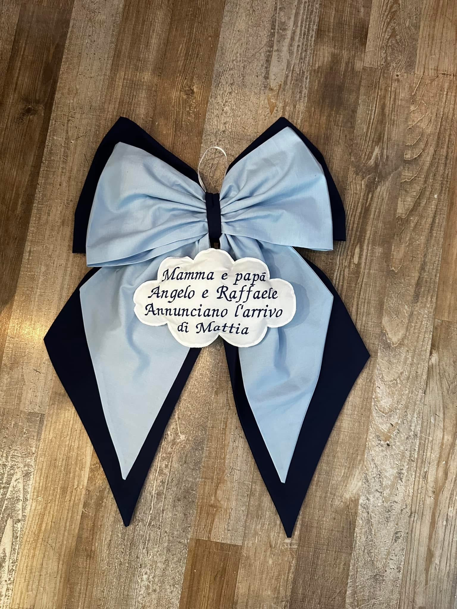 Ogni fiocco nascita è realizzato interamente a mano nel nostro laboratorio, cucito con amore e dedizione pensando al vostro momento speciale. Non troverete mai due fiocchi identici, perché ogni bambino è unico e merita una creazione che racconti la sua storia.