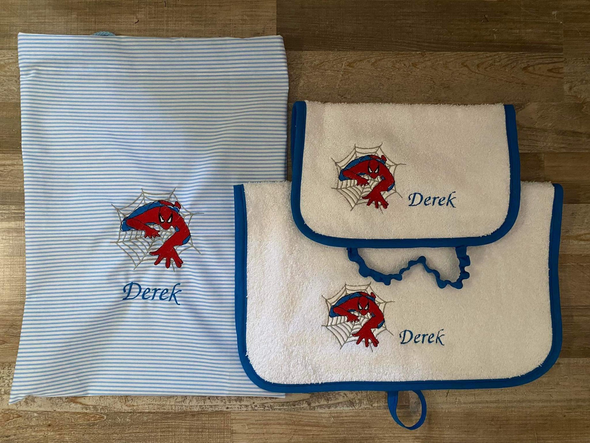 Ogni pezzo del set può essere personalizzato con il nome del vostro bambino ricamato , così sarà facilmente riconoscibile tra tutti gli altri. Non più confusione o scambi: il suo set sarà unico, proprio come lui!